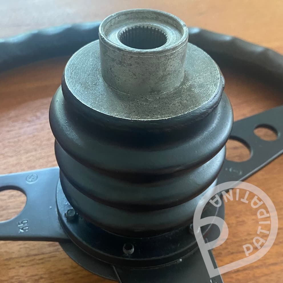 What I also tried to find out was whether these hubs have a different part number and thus indicate a different purpose. But unfortunately no luck, my black hub has the same part number as the unpainted hubs of the chrome steering wheels. My hub has the part no 32331113192, which indicates it belongs to a 350mm variant and was available for the 1502-2002 tii models (only).