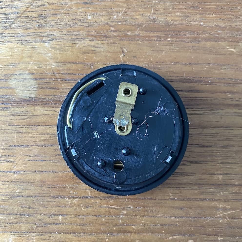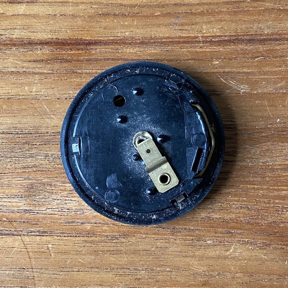 The chrome ring was replaced by a black plastic ring — a change also seen on Momo horn buttons during the same period.
