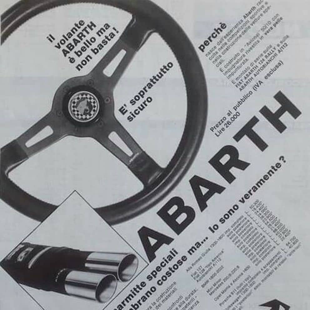 The first Abarth horn buttons appeared around 1967, alongside early Abarth steering wheels.