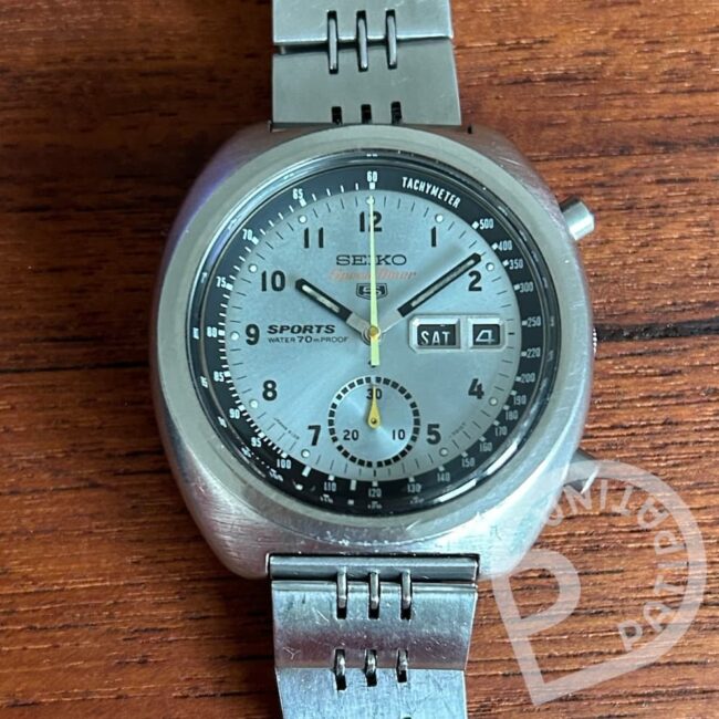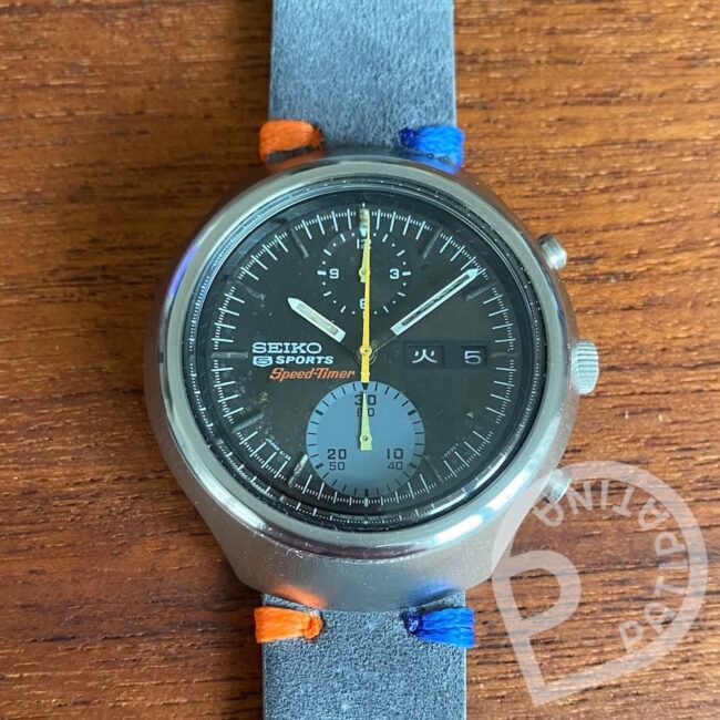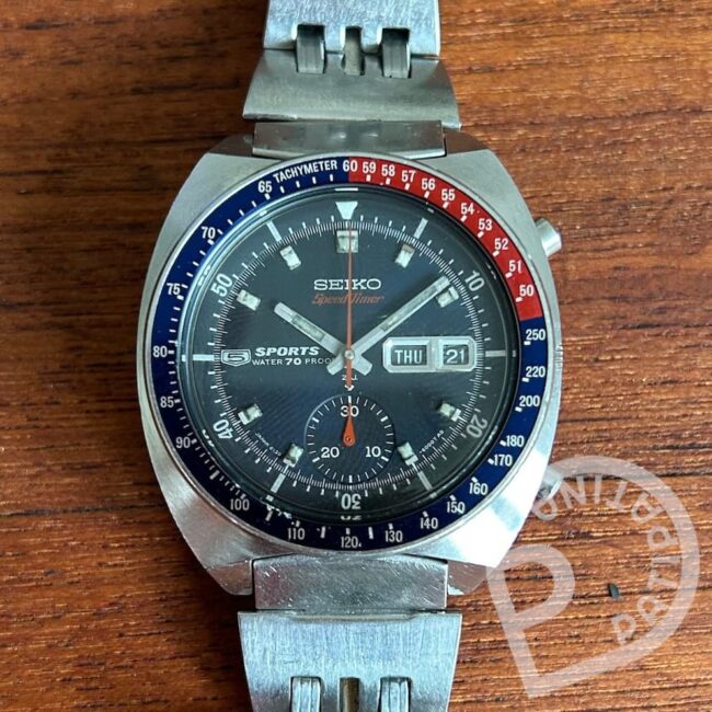One of the two dial designs of the Seiko 5 Sports 6139-8050 Speed-Timer, the most desired blue dial. Received a full service in 12/2024. See Timegrapher results for accuracy.